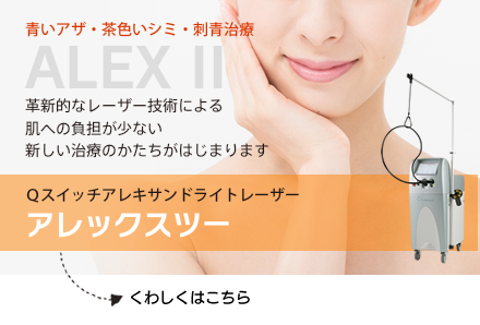アレキサンドライトレーザー「ALEX2」は、過剰なメラニン色素のみに効果が作用し、50ナノ秒という非常に短い照射時間でレーザー光を当てているため、患部周辺の正常な皮膚組織にほとんどダメージを与えることなく治療を行うことができます。